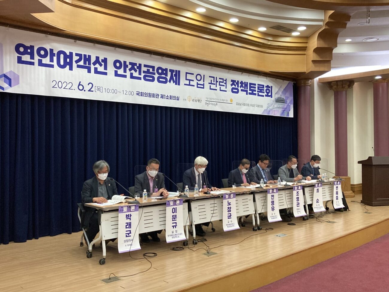 4·16재단(이사장 김광준)과 사회적참사특별조사위원회(위원장 문호승), 김승남 국회의원, 위성곤 국회의원이 공동으로 주최하는 ‘연안여객선 안전공영제 도입관련 정책토론회’가 지난 6월 2일 국회의원회관 제1소회의실에서 진행되었습니다.