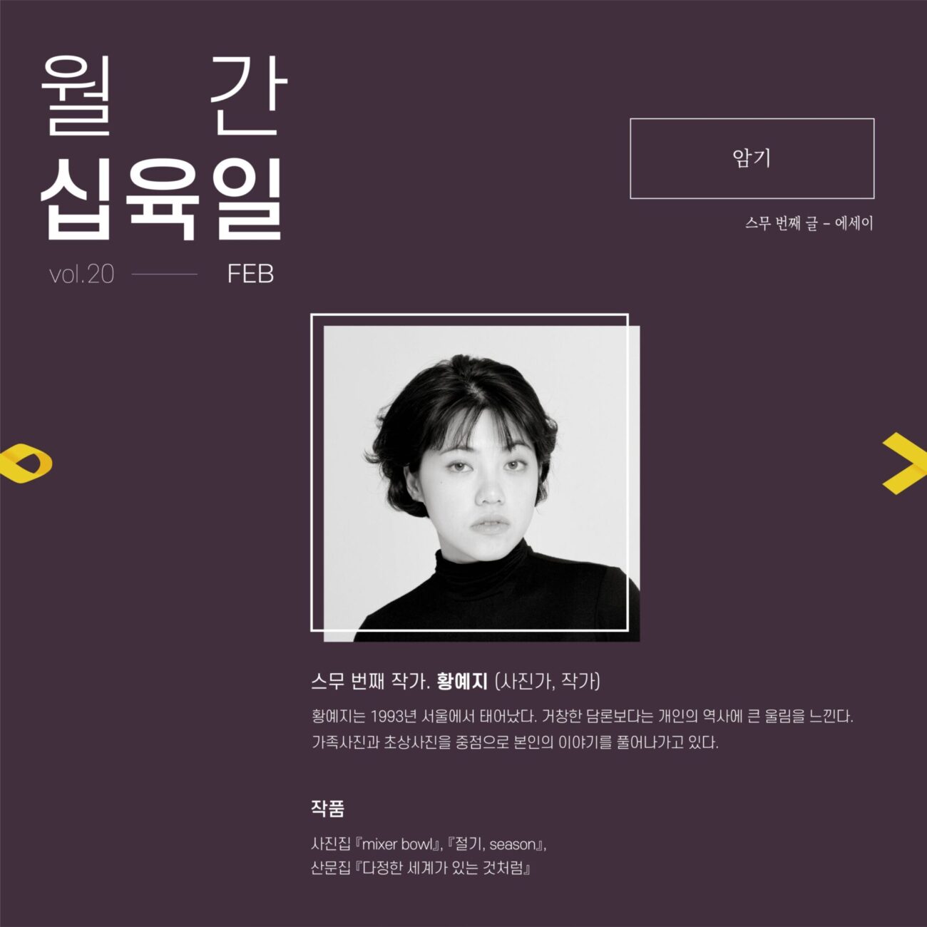 2월의 《월간 십육일》에서는 황예지 작가님의 에세이를 소개합니다