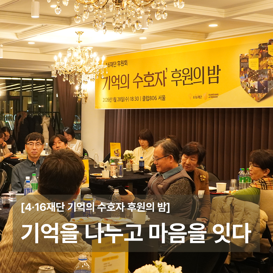 그래서 4·16재단은 이 길을 나란히 걸어줄 ‘기억의 수호자’를 찾고 있는데요. 재난을 겪은 청소년·청년을 응원하고, 그들의 회복과 성장을 함께 만들어 가기 위한 캠페인입니다.