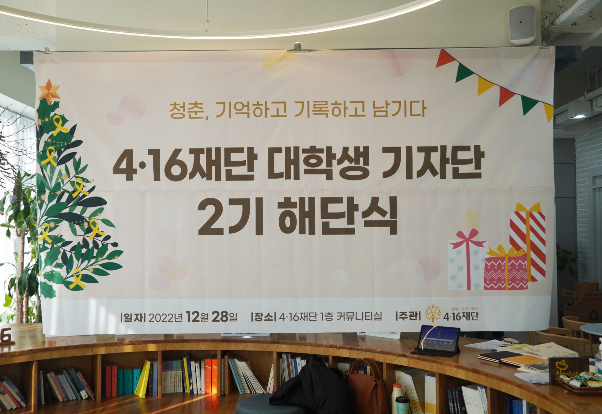한 해의 끝을 상징하는 겨울은 언제나 우리에게 설렘과 아쉬움을 동시에 가져다 주곤 합니다. 열 달간 동고동락하며 세월호참사 및 4·16재단 사업을 열심히 취재해 준 ‘대학생 기자단 2기’의 여정이 12월 마지막 주 해단식으로 모두 마무리되었습니다. 아쉬움 가득한 헤어짐이지만, 활동 기간 동안 늘 적극적으로 임해준 인원들이기에 ‘감사하다’는 인사말을 한 번 더 전하며 그들의 다음 행보를 응원하기로 했습니다.