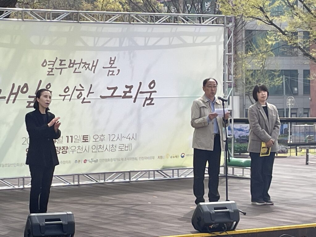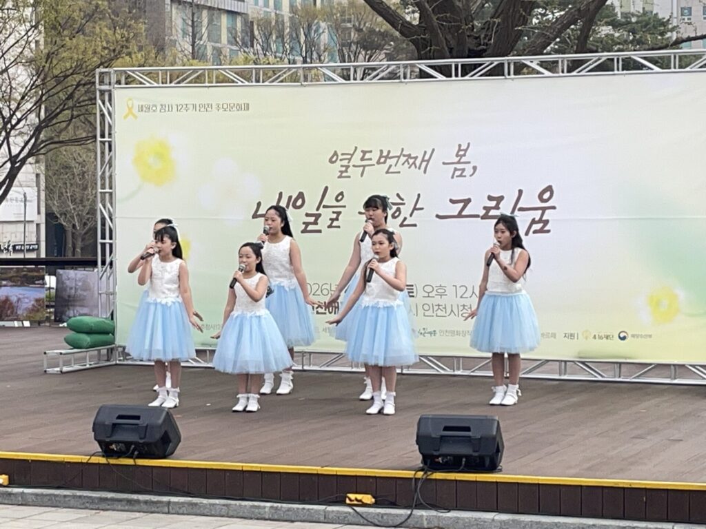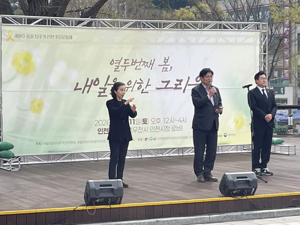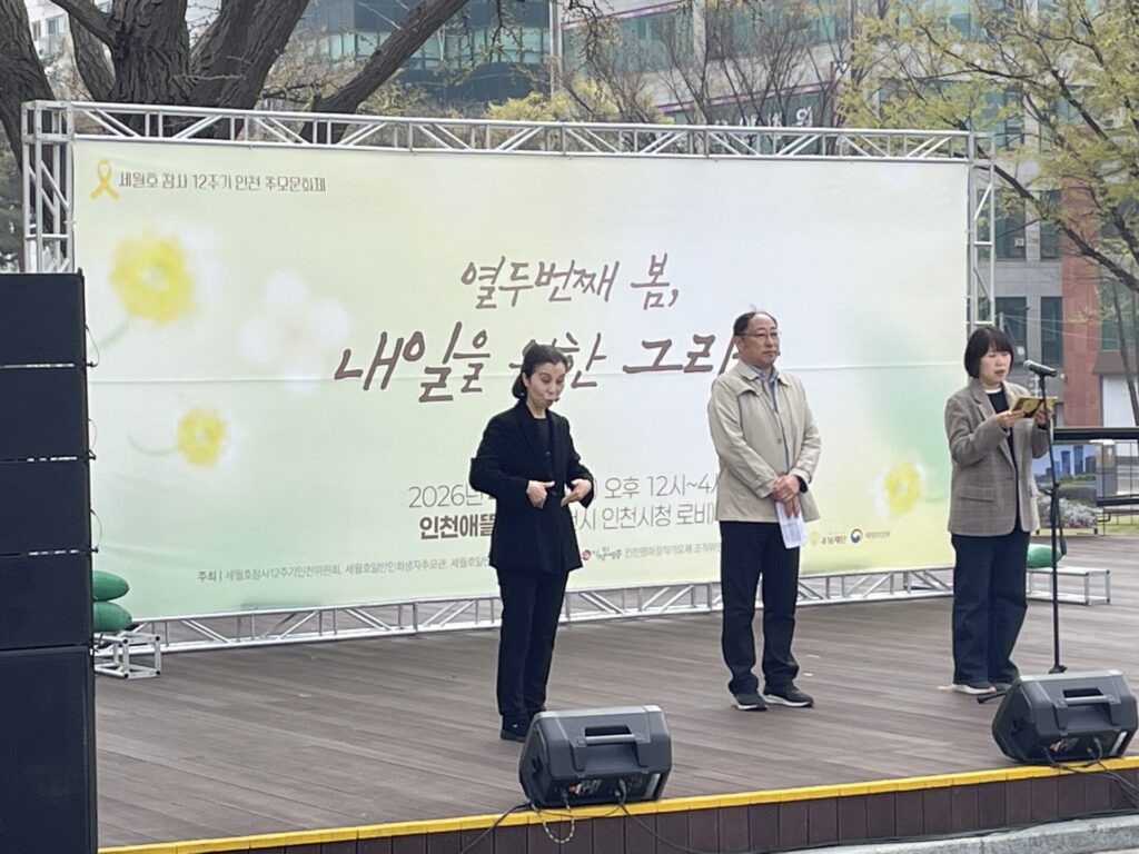 열두 번째 봄이 다가온 인천, 세월호참사를 기억하는 이들이 인천 애뜰광장에 모였다. 내일을 위한 발걸음, 이를 위한 기억과 행동을 다짐하는 추모식이 거행되었다.
