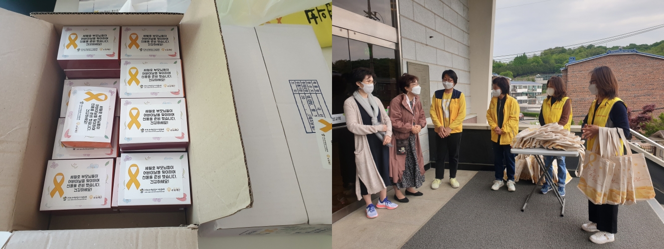 어버이날에는 5월 8일 ~ 9일 이틀 동안 안산시 고잔동 인근에 거주하시는 어르신 300분께 선물 나눔을 진행했습니다.