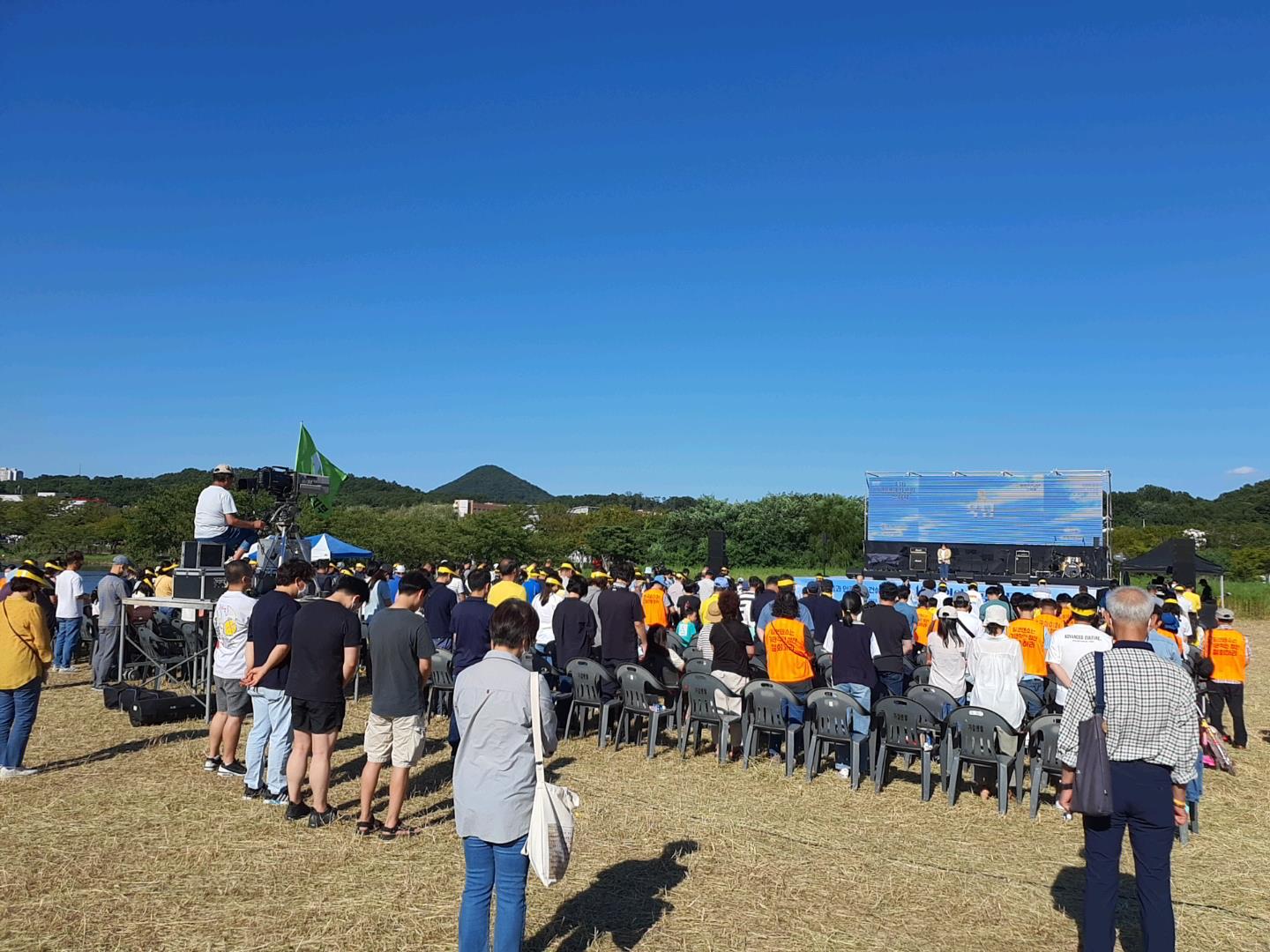 치어리딩 공연이 마무리된 뒤, 참석자 모두가 묵념을 통해 세월호참사를 기리는 시간을 가졌습니다.