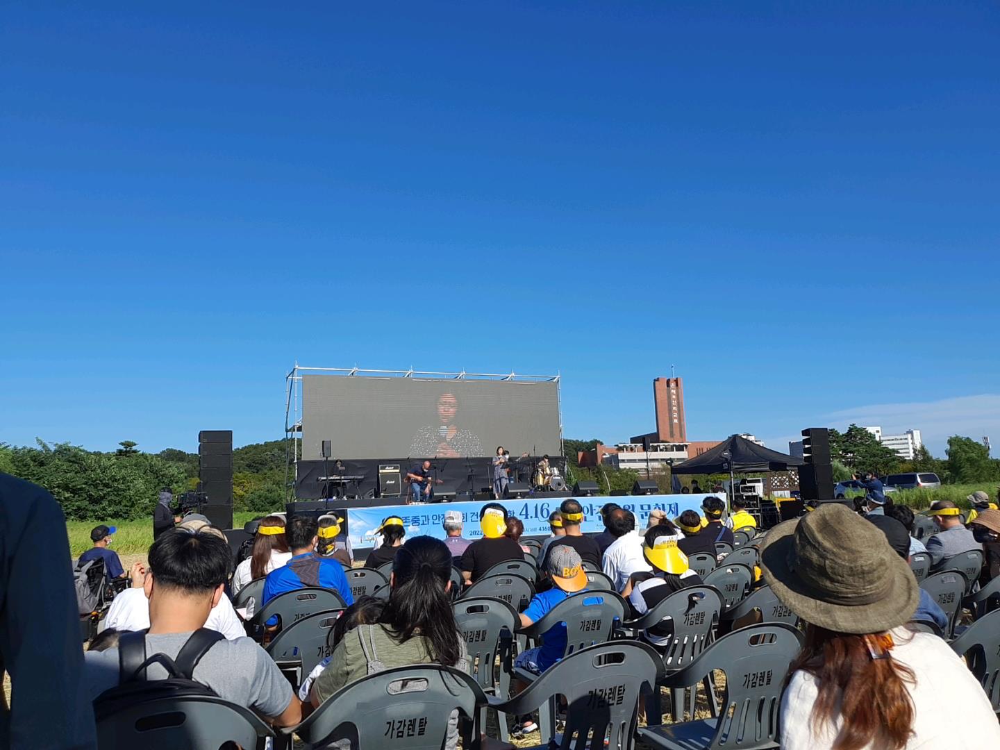 묵념이 끝난 뒤, 본격적인 공연이 시작되었습니다. LNS 밴드는 ‘세월호참사를 떠올릴 때면 늘 학교생활을 같이 했던 친구들이 생각난다. 잊지 않겠다.’라고 말하며 세월호참사를 단순 기억해야 해서 기억하는 것이 아니라, ‘참사’ 그 자체가 우리 모두에게 언제든 일어날 수 있는 일이기에 늘 상기하자는 이야기를 건넸습니다.