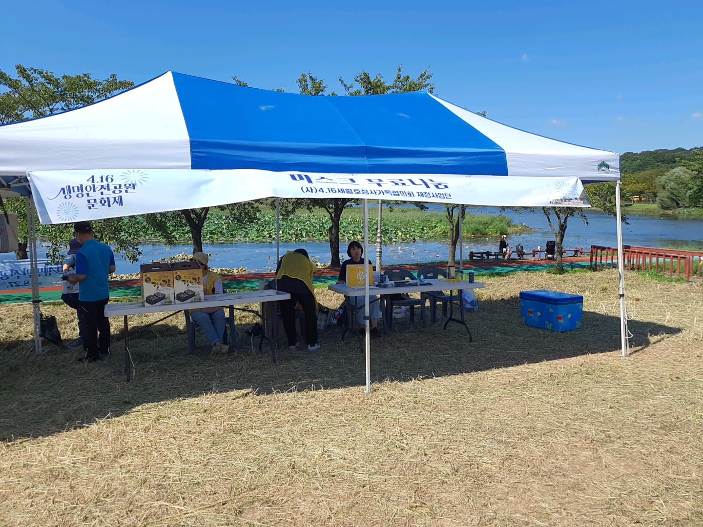 내부 탁자를 자세히 들여다보니 ‘세월호 참사 진상규명’과 ‘안전사회 건설’을 위한 재정사업을 홍보하고 있었습니다. ‘4·16 생명안전공원 건설 희망’ 메시지의 경우, 세월호 부모님들께서 직접 방문객들에게 설명하고 계셔서 한 번 더, ‘4·16 생명안전공원 문화제’의 취지를 생각해 보게 되었습니다.