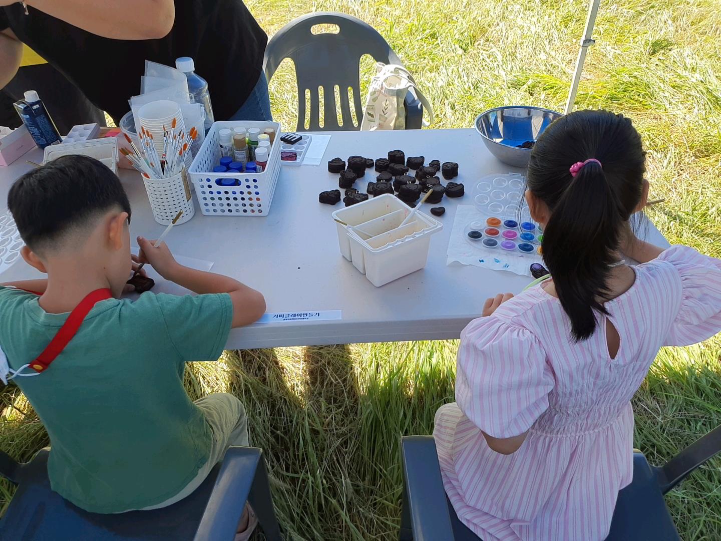 ‘별들과 함께하는 온마을학교’ 부스에서는 ‘커피클레이 만들기’가 진행되었습니다. 찰흙 형태인 커피클레이를 짜여진 틀에 넣은 후, 원하는 모양을 만들어 내는 미술 활동이었습니다. 토끼, 곰, 자동차 등 초등생들 눈높이에 맞춰 준비된 행사임을 바로 알 수 있었습니다.