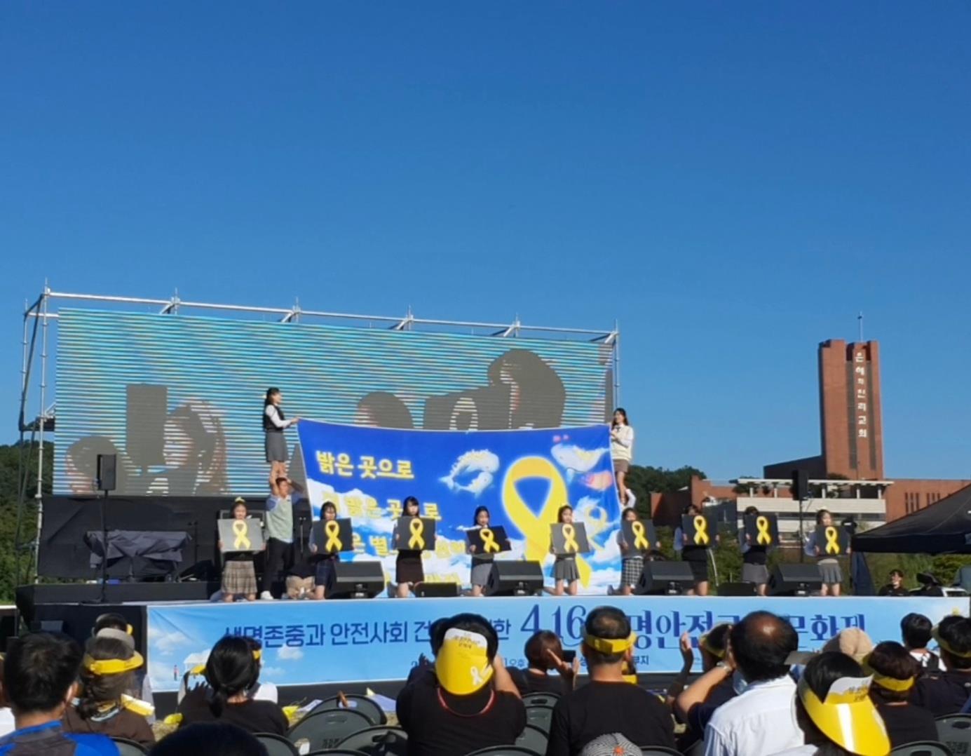 공연이 마무리되고 ‘세월호참사 추모’, ‘안전사회 건설’에 함께하는 사람들을 화면으로 만나볼 수 있었습니다.