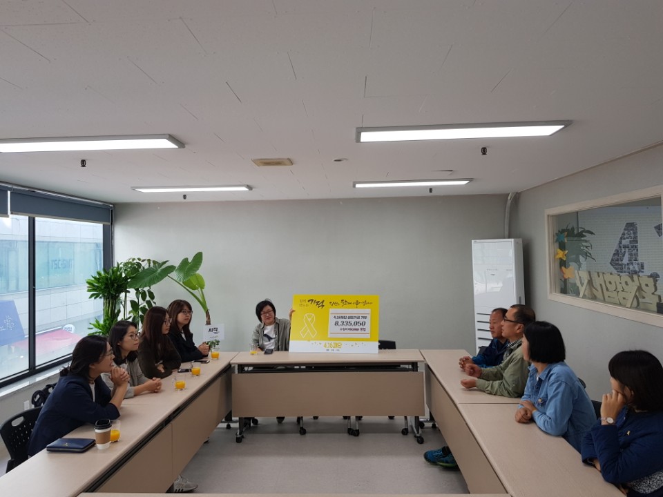 지난 9월 27일, 수원미래아이쿱생협에서 재단 설립기금 8,335,050을 전달하기 위해 사무실을 방문해주셨습니다.