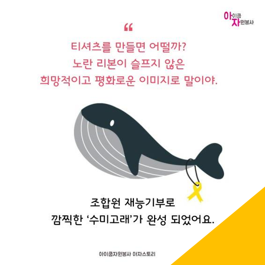 올해는 4.16재단 설립기금을 마련하기 위한 활동을 하기로 결정하고 ‘수미고래 티셔츠’를 제작해 판매했습니다.