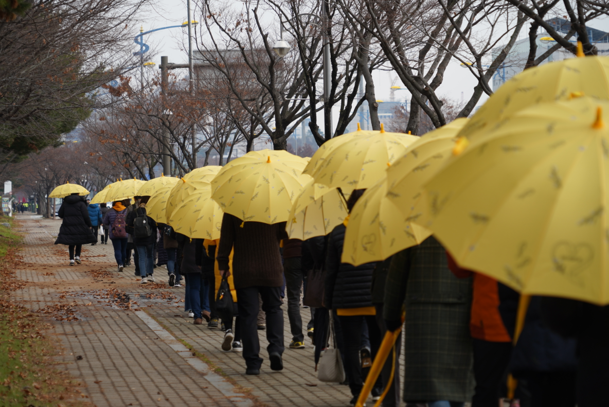 2부는 ‘기억과 약속의 길 걷기’로 4.16가족협의회 강당에서 출발해, 걸어서 4.16생명안전공원 부지를 거쳐 단원고와 기억교실을 방문했습니다.