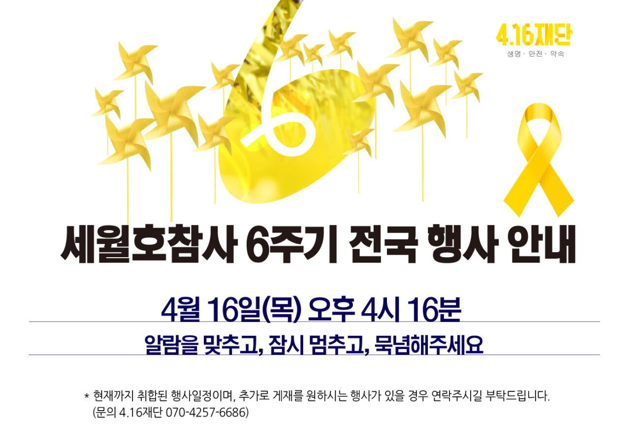 세월호참사 6주기 전국 행사 안내
