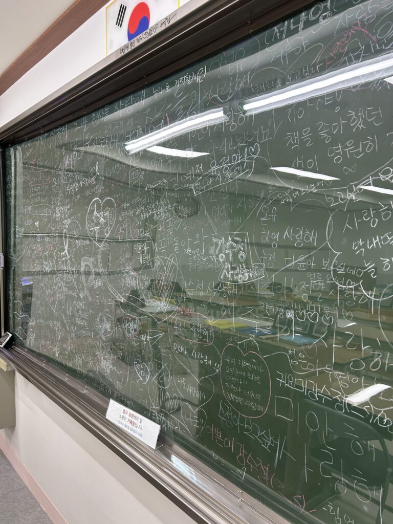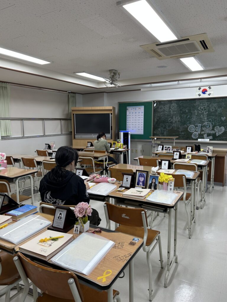 마지막 일정은 단원고 4.16 기억교실에서 진행되었다. 기억교실은 세월호 참사 당시 단원고등학교의 모습을 기록물의 형태로 온전하게 보존해놓은 공간이다. 천장의 타일 하나, 창가의 창문 하나 빠뜨리지 않고 그대로 옮겨 놓았다.