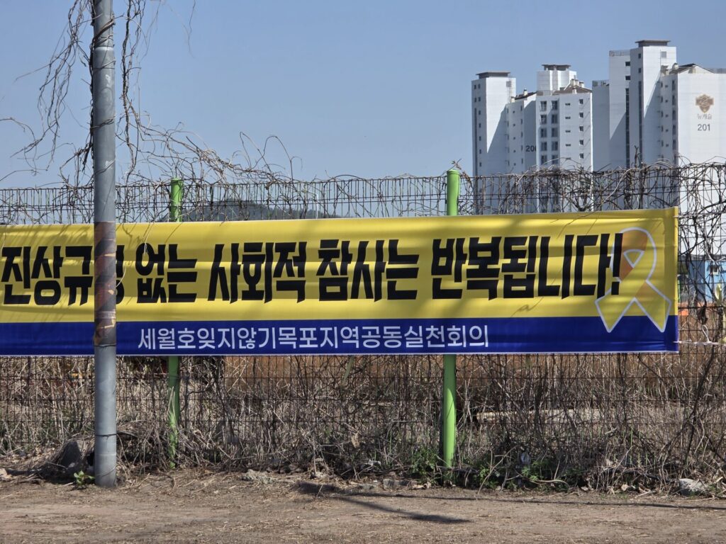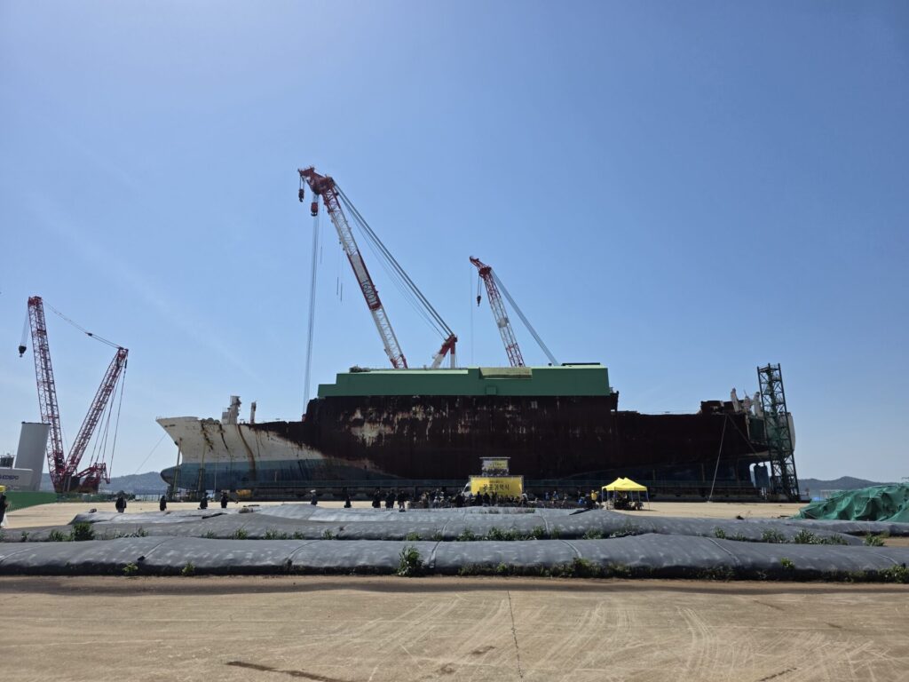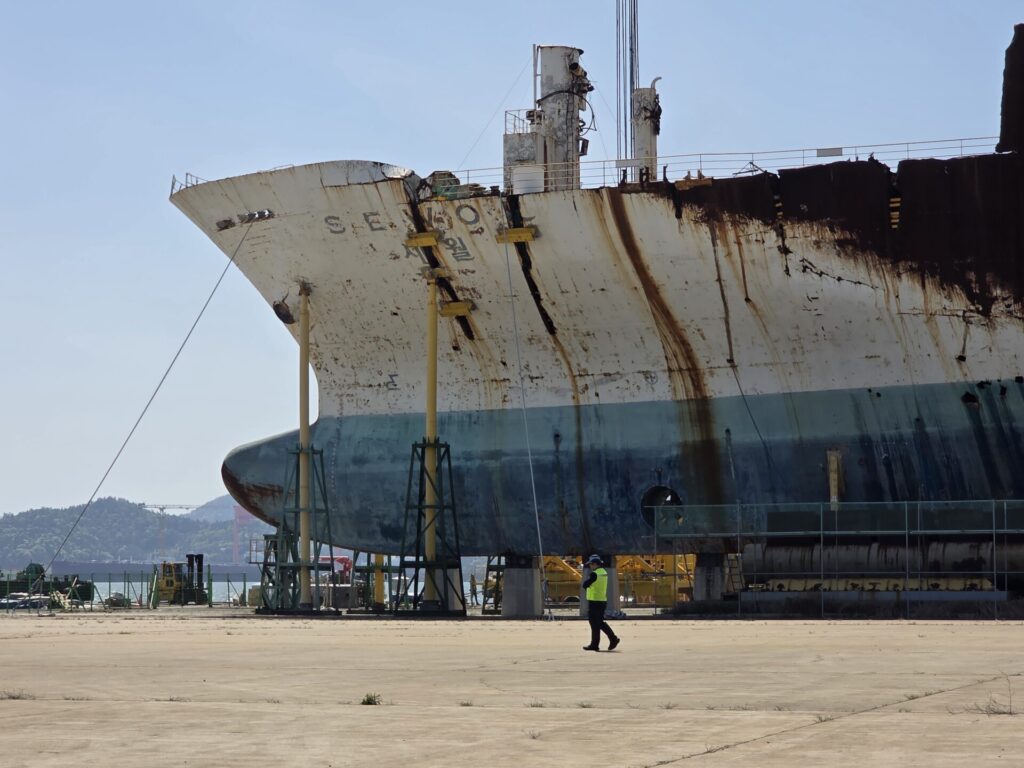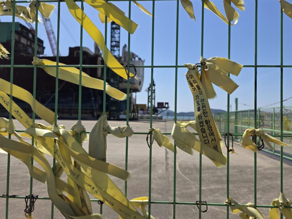 멀리서도 보이는 세월호는 많이 녹슬어 있었습니다. 녹슬어 버린 세월호를 보며, 12년이라는 오랜 시간의 경과를 실감했습니다.