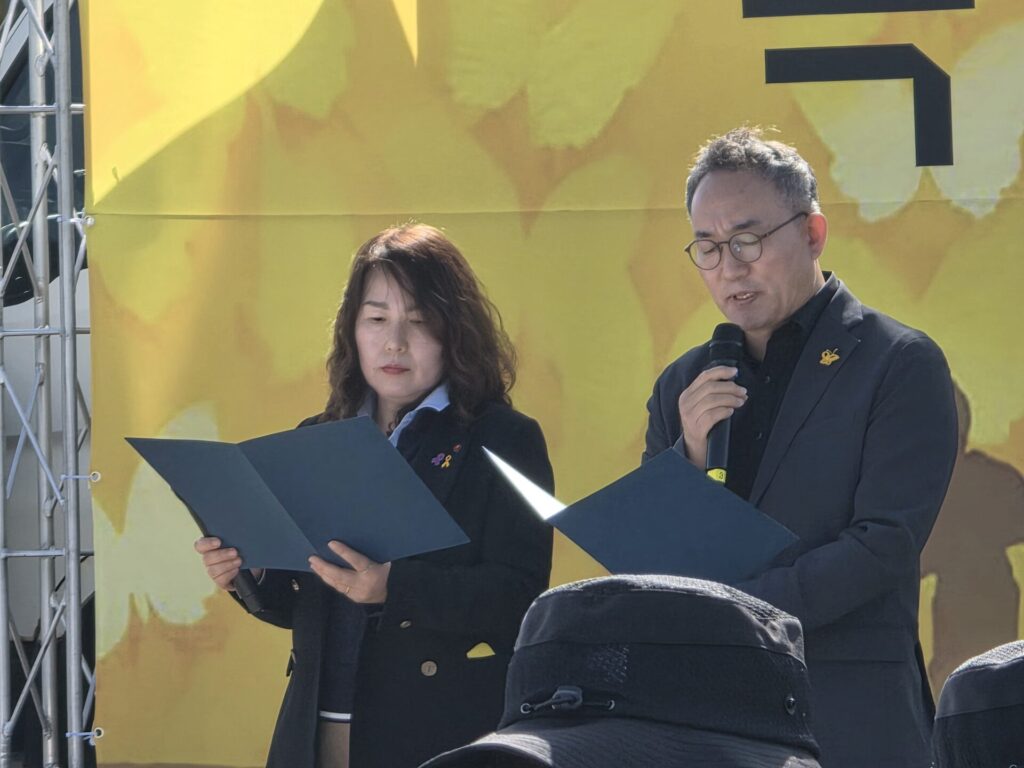 10.29이태원참사유가족협의회 이종민님은 "팽목항에서도 이태원 골목에서도 국가는 어디에 있었냐, 왜 아이들을 구조하지 못했냐, 왜 우리 사랑하는 가족을 아무런 이유도 모른 채 떠나보내야 했냐는 질문에 국가는 단 한 번도 제대로 답하지 않았다"는 말로 연대사를 시작했습니다. 세월호 유가족이 묵묵히 걸어온 길은 이태원참사 유가족에게 어둠 속 한 줄기 빛이었으며. 희생과 희망, 또 가슴이 무너질 만큼의 미안함이었음을 전했습니다. "모든 아이들이 안전하게 살아갈 수 있는 그날까지 흔들림 없이 나아가겠다"며, 우리들이 가는 이 길을 함께 동행해달라는 연대를 청하며 마무리했습니다.