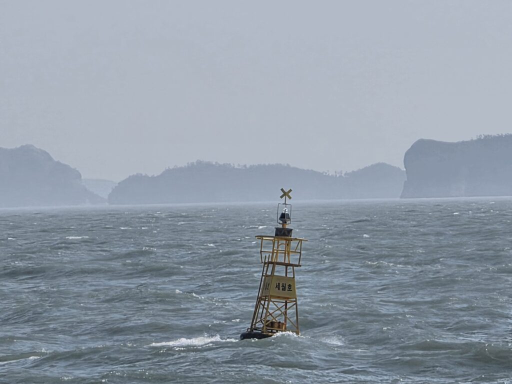 3시간 반이 지날 무렵, 전남 진도군 조도면 동거차도 인근 해역(맹골수도)에 다다랐습니다. 세월호 참사 해역임을 표시한 부표가 보였습니다. 세월호 미수습자를 수색한 김순종 잠수사에 따르면, 전국에서 두 번째로 조류가 센 곳이 진도 맹골수도라고 합니다. 우리의 차고 넘치는 슬픔을 닮아서일까요. 오늘의 날씨는 화창했지만, 바람은 드세고 바다는 출렁거렸습니다.