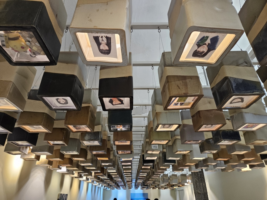 전시관 안으로 들어서면, 천장에도 지관이 보입니다. 도자기로 만들어진 도자기지관입니다. 참사 이후 2015년부터 도예가 선생님을 비롯하여 여러 봉사자분들이 연대하여 만들어졌다고 합니다. 단원고등학교 250명의 학생, 11명의 선생님이 희생되어 261명의 이야기를 많이 들으셨을 겁니다. 이 공간은 304명 희생자 전체에 대한 지관이 만들어져 있습니다. 아이들과 평상시 가족들이 소중하게 다뤘던 물품들이 도자기 지관 안에 넣어져 있습니다. 곳곳에 빛들이 새어 나오는데, 빛으로 내려왔다가 빛으로 올라가라는 뜻이 담겨 있습니다.