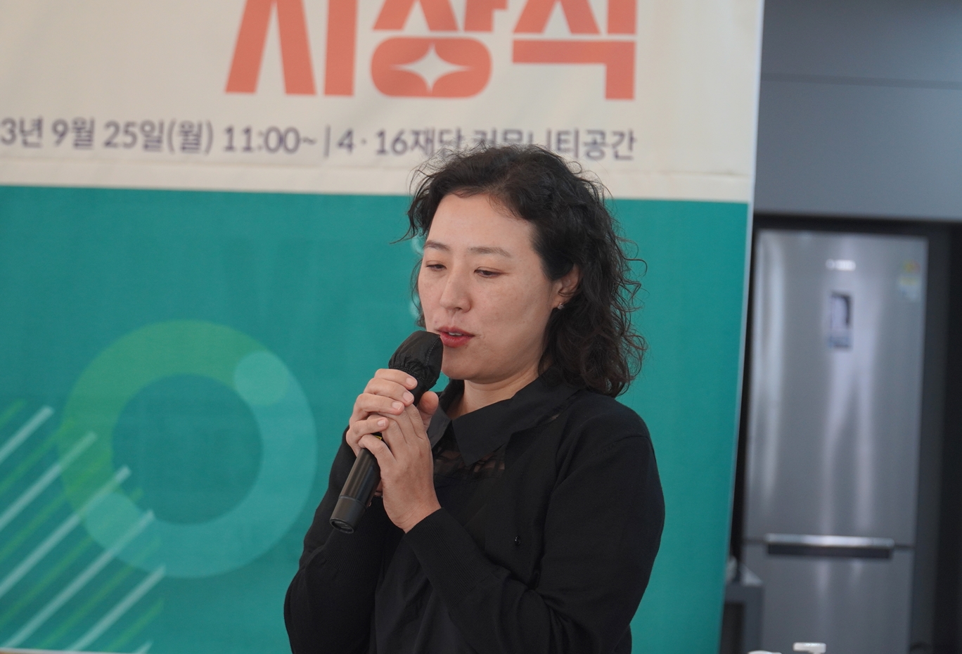 김수희 (구두리) 작가 – “‘구두리’ 라는 필명으로 작업을 한 첫 이래, 이렇게 큰 상을 받게 돼 우선 감사하다는 생각이 듭니다. 수상의 의미는 계속해서 사회적 사안에 관심 갖고 세월호 유가족분들이 마주한 현실을 곁에서 오래도록 지켜보는 사람이 되라고 주신 상이지 않나, 그러한 생각이 듭니다. 사실 저는 오래도록 연극을 연출했고 희곡을 써왔습니다. 어느 날 전태일기념관에서 공연 연출을 하던 중 신경수 감독님이 ‘4·16재단 문화콘텐츠 공모전’을 말씀하시면서 시나리오를 한번 써보라고 권유해 주시더라고요. 주저만 하고 있었는데 10주기를 맞이하여 문득 아직도 밝혀지지 않은 진실에 대한 것들을 이야기해보고 싶어졌습니다. 그렇게 시작한 작업이 이렇게 제게 기회를 주었네요. 정말 정말 감사합니다.”