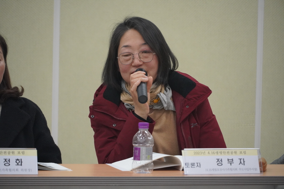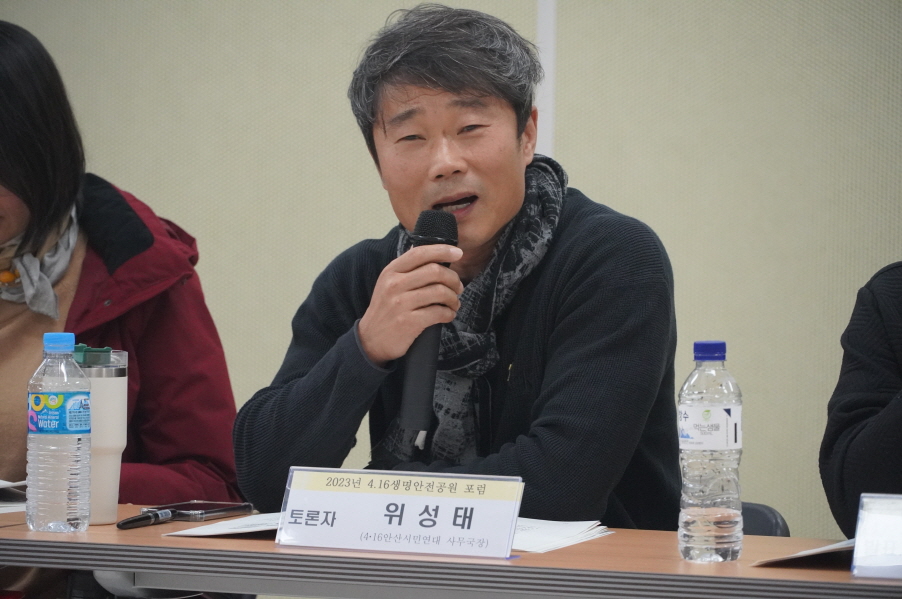 발표가 끝나고 토론 시간이 이어졌습니다. 4.16안산시민연대의 위성태 집행위원장은 “4.16생명안전공원의 들꽃정원은 많은 사람이 와서 시끌벅적하며 희생된 아이들이 외롭지 않은 안식처가 됐으면 좋겠어요. 잘 가꾸어진 정원과 울창한 숲이 있고, 아이들 그림대회와 청소년들 댄스 축제와 같은 다양한 문화예술 프로그램이 있는 공간으로 만들고 싶어요.”라고 의견을 주셨습니다.