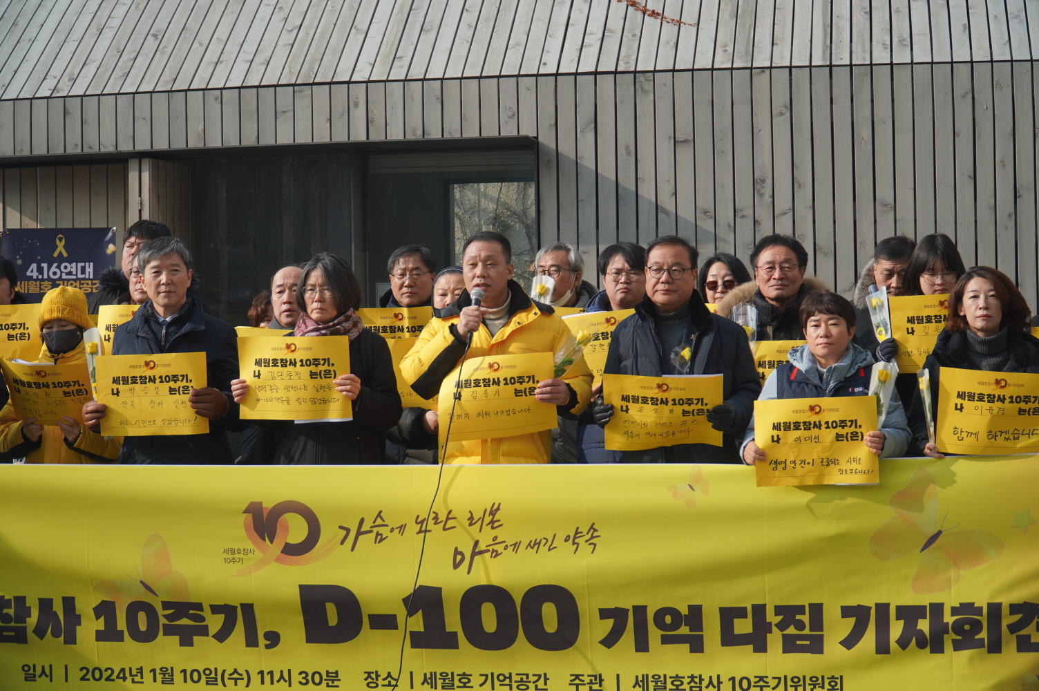 ‘4.16세월호참사 10주기위원회(공동위원장 상임대표 김광준, 김종기, 김민문정, 박승렬, 송성영, 양경수)’는 1월 10일(수) 11시 30분, 세월호참사 10주기를 100일 앞두고 세월호 기억공간 앞에서 기억 다짐 기자회견을 진행하였습니다.
