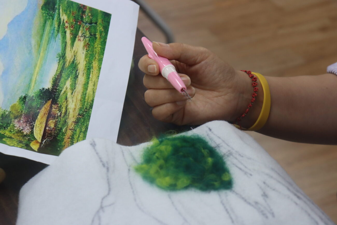 지난 28일(금) 안산시 단원구에 자리한 4.16세월호참사가족협의회 공방에서 세월호 어머니들을 대상으로 한 양모펠트 작품 제작 과정 교육이 진행되었다. 어머니들은 각자 준비해온 도안을 바탕으로 양모펠트 작업을 시작했다. 4.16 재단 사업 내에서 만들어진 세월호 관련 그림을 가져오기도, 직접 그린 그림을 도안으로 쓰기도 했다. 어머니들은 전문 교사의 지도를 따라 그림으로 전하고 싶은 메시지를 완성했다.