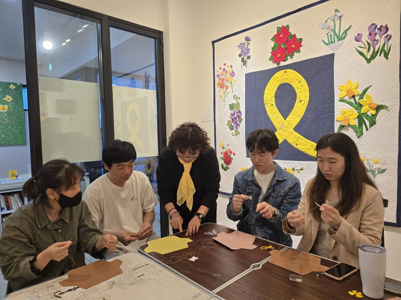 이러한 활동의 일한으로, 지난 4월 19일 부산 효로인디아트홀에서 4.16공방의 작품 전시 및 간담회가 열렸습니다. 여름 무더위 속에서도 공방에 모여 정성껏 자수를 놓고 작품을 완성해 온 어머니들의 손길이 담긴 결과물을 직접 볼 수 있는 자리였습니다.