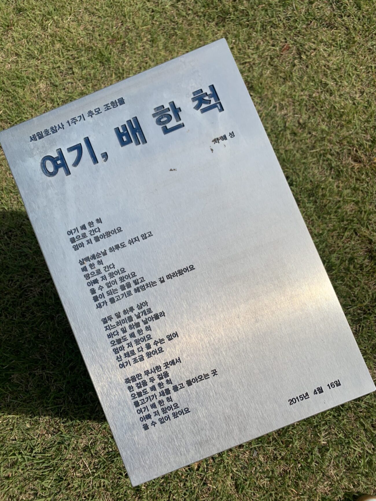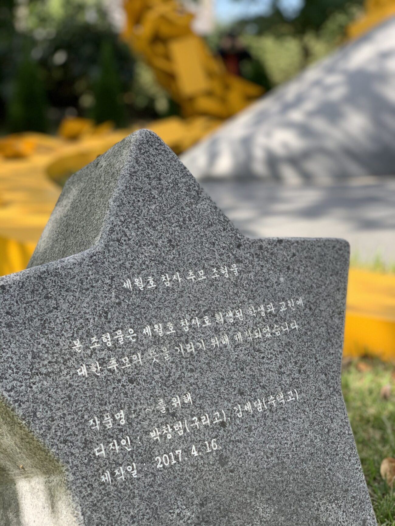 경기도교육청에는 고등학생 2명이 디자인해서 함께 만든 세월호 추모 구조물이 있습니다. 부모님들은 구조물 앞에서 “내 아이의 이름이 여기에 세겨져 있다는게 너무 속상하고 화난다. 그럼에도 또 이런데 오면 우리 아이 이름부터 찾게 된다”는 그 말에 또 먹먹함이 밀려 옵니다.