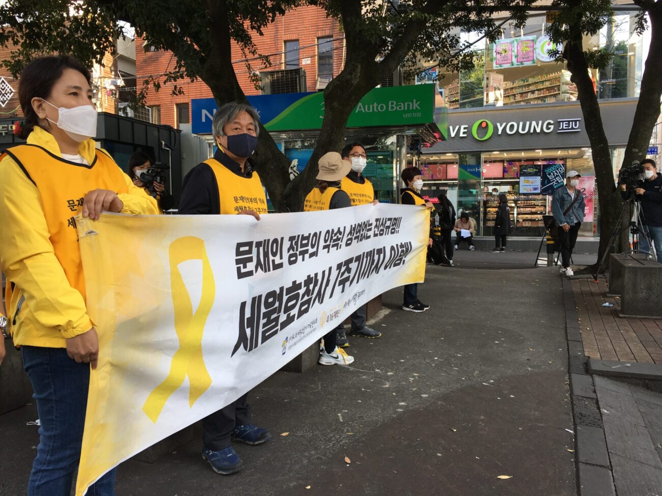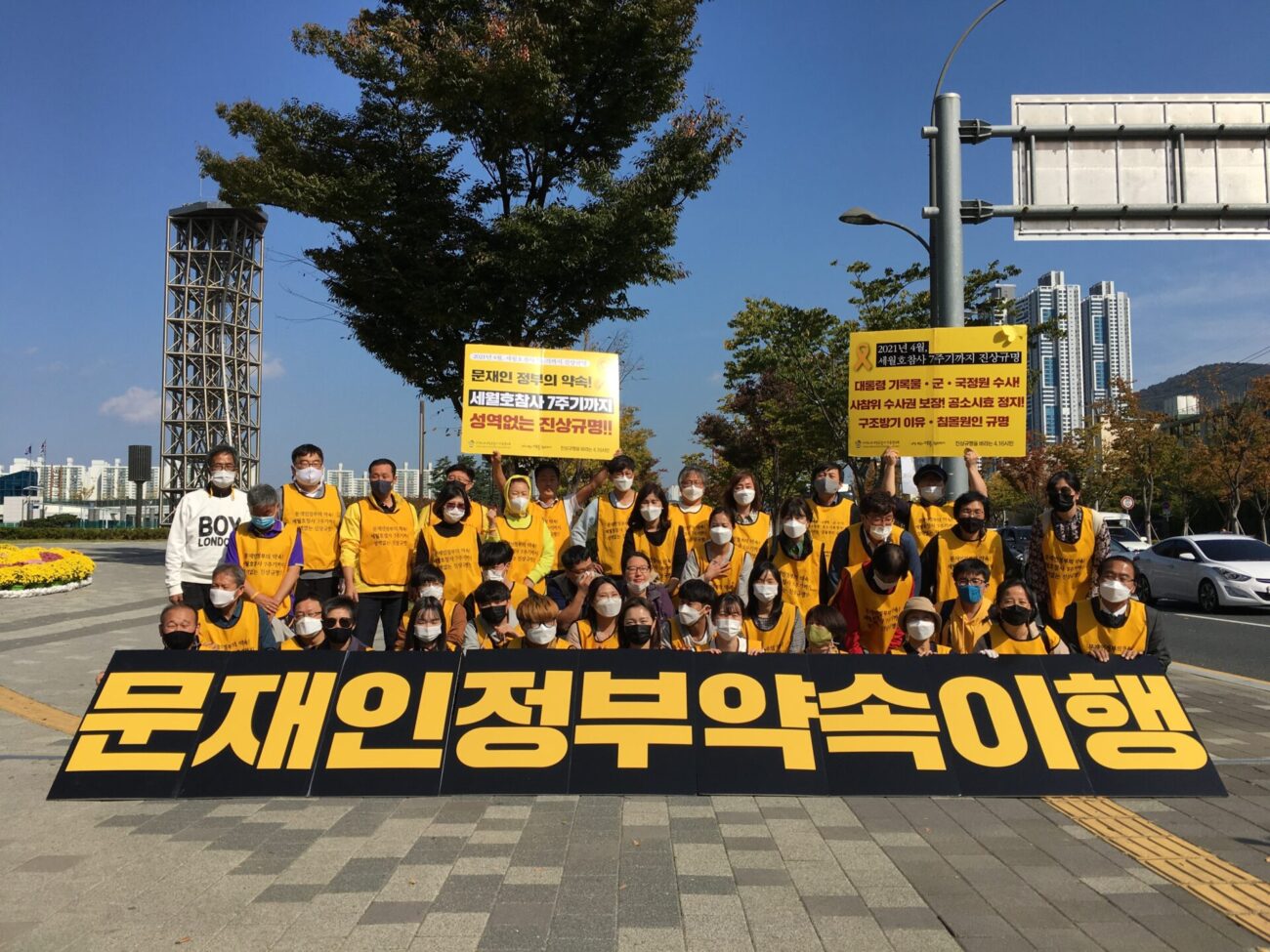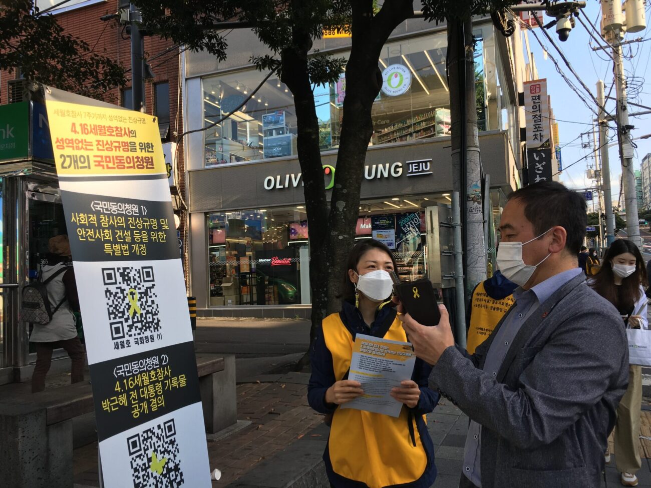 엄마, 아빠들은 진상 규명을 위해 거리 위 선전전을 진행합니다. 더 나은 세상으로 가는 첫걸음은 ‘진상 규명’입니다. 그렇기에 다소 스산해진 날씨에도 묵묵히 “부모이기에 포기할 수 없다”는 다짐 아래 ‘세월호참사 사회적참사특별법개정’과 ‘박근혜청와대 대통령 기록물 공개’ 청원에 대해 모든 시민들이 알아주길 바라며 묵묵히 걸음을 옮기고 있습니다.