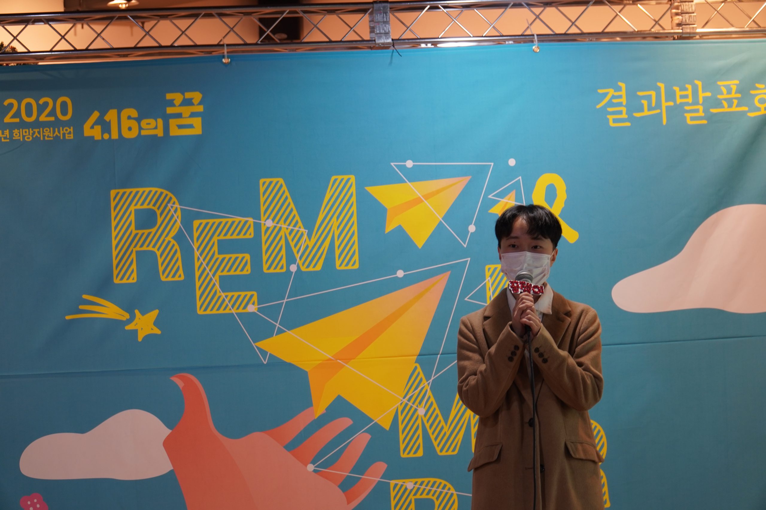 오늘 꿈쟁이들의 작품을 보며 정말 감동을 받았습니다. 말 그대로 “나이는 숫자에 불과하구나.”를 느꼈어요. 처음에는 학생들에게 지원하는 꿈 지원금이 과연 이 돈이 얼마나 알차게 쓰일까, 과연 제대로된 결과물이 나올 수 있을까? 그 모든 걱정을 감동으로 바뀌는데 5분이 걸리지 않았아요. 입구에 들어서 테이블에 놓여있는 작품들, 사진들, 영상들, 그리고 글들이 제 눈 안으로 들어 왔을 때, 이미 벅차올랐습니다. 그리고 고민이 생겼어요. 이 많은 감동을 어떻게 나눠야 할까, 여기서 끝나지 않도록 어떻게 해야 할까? 오히려 더 고민하고 더 나아가야 할 건 우리 4·16재단이라는 생각이 들었어요. 너무 고맙다는 말 꼭하고 싶어요.