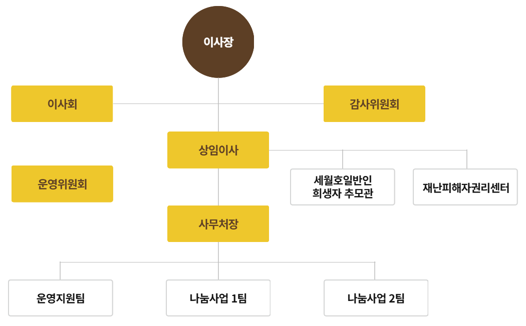 | 팀원 | 기억과추모사업, 안전문화확산사업 4.16세월호참사 추모사업 지원 <기억과약속 공모사업> 참사해역 선상추모식 세상을 바꾸는 4.16청소년문화제 피해자 활동지원 : 텃밭가꾸기, 수확체험 활동 4.16세월호참사 디지털아카이브 운영 및 관리 | 070-4150-3719 |