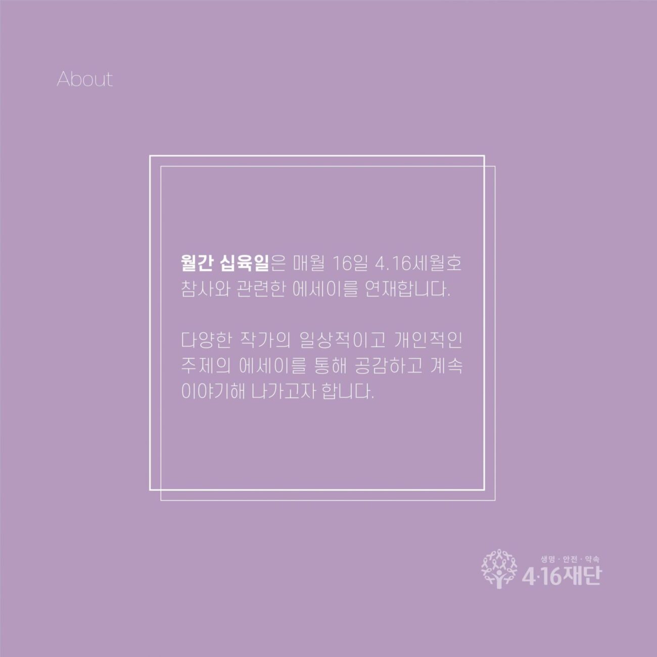 *월간 십육일에서 연재되는 모든 작품들은 4·16재단 홈페이지, 블로그, 뉴스레터 등에서도 확인이 가능합니다.